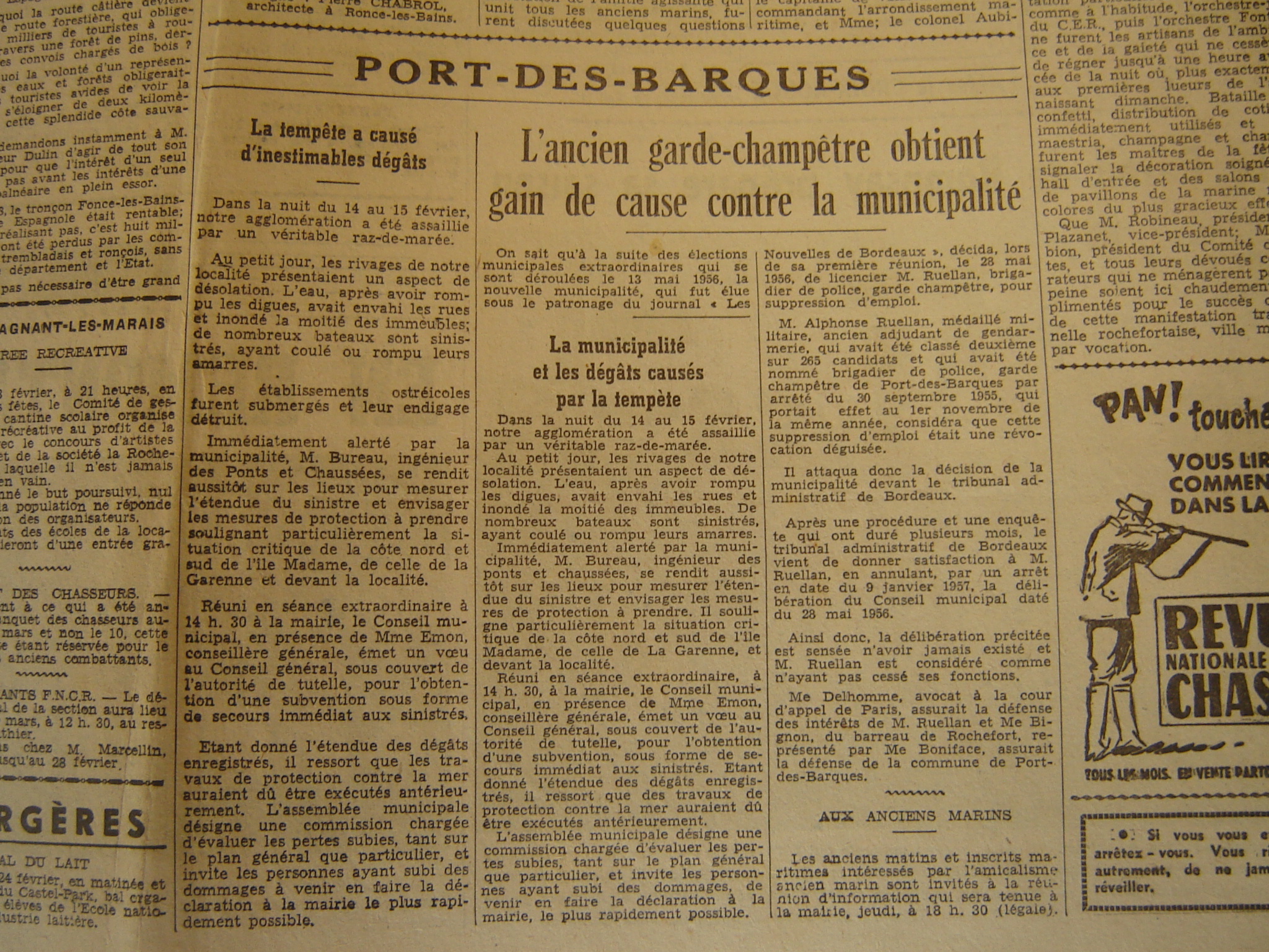 Coupure de journal (Sud-Ouest ?) du 17 février 1957