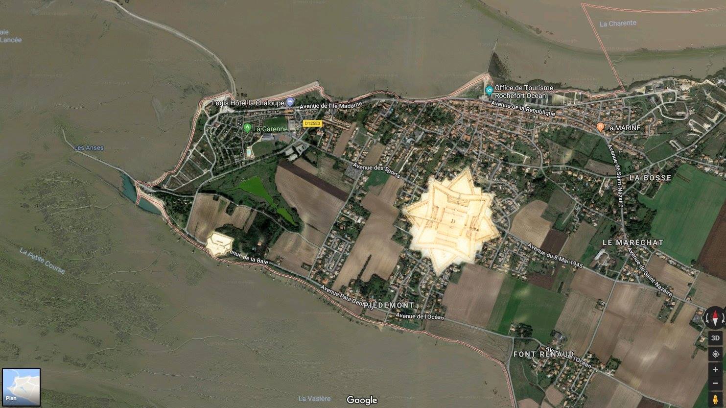 | Contenu | Photo et plan de la presqu'île avec, en superposition, les emplacements des forts Chagnaud et du Peu. |